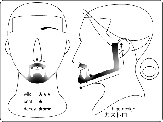 カストロ:まさに男臭さと、大人の雰囲気の絶妙なバランスなデザイン。クールな雰囲気を出す には、ただ生やすだけじゃ駄目。色彩のグラデーションをつけると、そこに洗練された大人のデ ザインが生まれます。