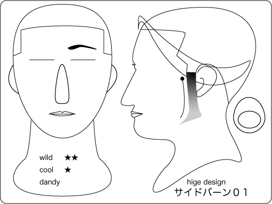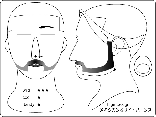 アンカー:男臭いワイルドな感じを残しつつも、サイドのグラデーションが洗練された雰囲気を 演出します。口ヒゲの太さで、紳士的な雰囲気もアリの大人のヒゲデザイン。