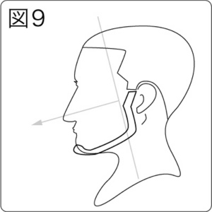 耳前部〜顎下部〜顎までのラインを緩やかな曲線で結んだアウトラインです。緩やかな曲線によ り顎下部の印象が少なくなります。縦方向に長い楕円をイメージさせるために、面長なイメージ を助長するので注意が必要です。ただし、様々な顔の形に適応できるデザインです。