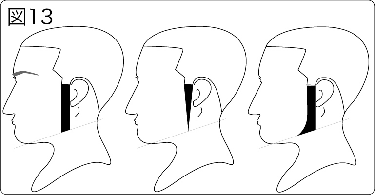 まずは横顔を「髯(ほおひげ:sideburm )」から顎にかけてのアウトラインにおけるデザインの 印象変化の様子を述べていきたいと思います。
