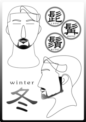 四季によってヘアスタイルを変えたりするように、ヒゲも季節によってデザインを変えても面白いと思うのです。春には冬の面影を残しつつ、洋服を一枚脱ぐような感覚のデザイン。夏には強烈な日差しにたいして涼しさを求め、汗にも強い爽やかな長さのデザイン。秋には夏の暑さから冬へと変化しつつも、どこか知的な雰囲気のデザイン。冬には厳しい寒さのなかにある男の「温かみ」と、「ワイルド」な感じを持ち合わせたデザイン。その季節ごとにコンセプトを決めて「あご」「ほお」「くち」ヒゲをそれぞれデザインしております。また年間を通じてヒゲデザインを変化させない方でも自分のヒゲが、四季のどの季節に属するデザインなのかを知ることも大切です。対局的な季節である「夏」と「冬」ですが、夏の「涼しさ」は冬においては「冷めた冷静さ」な雰囲気、冬の「温かさ」は夏においては「暑苦しい」というマイナスのイメージを演出してしまうことも考慮する事も大切なのです。その場合はデザインは変えずに、長さの変化をさせるなどの工夫が必要になります。ヘアスタイルを相談するように、判らないときは近所の理容店で相談してみると良いかと思います。