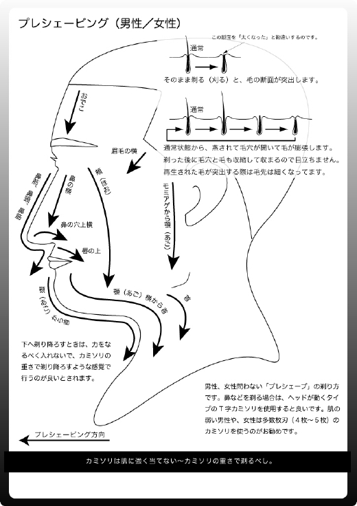 男性では「ヒゲ」、女性では「産毛」を剃るというコト〜それが「顔剃り」つまり「シェービ ング」ということになります。